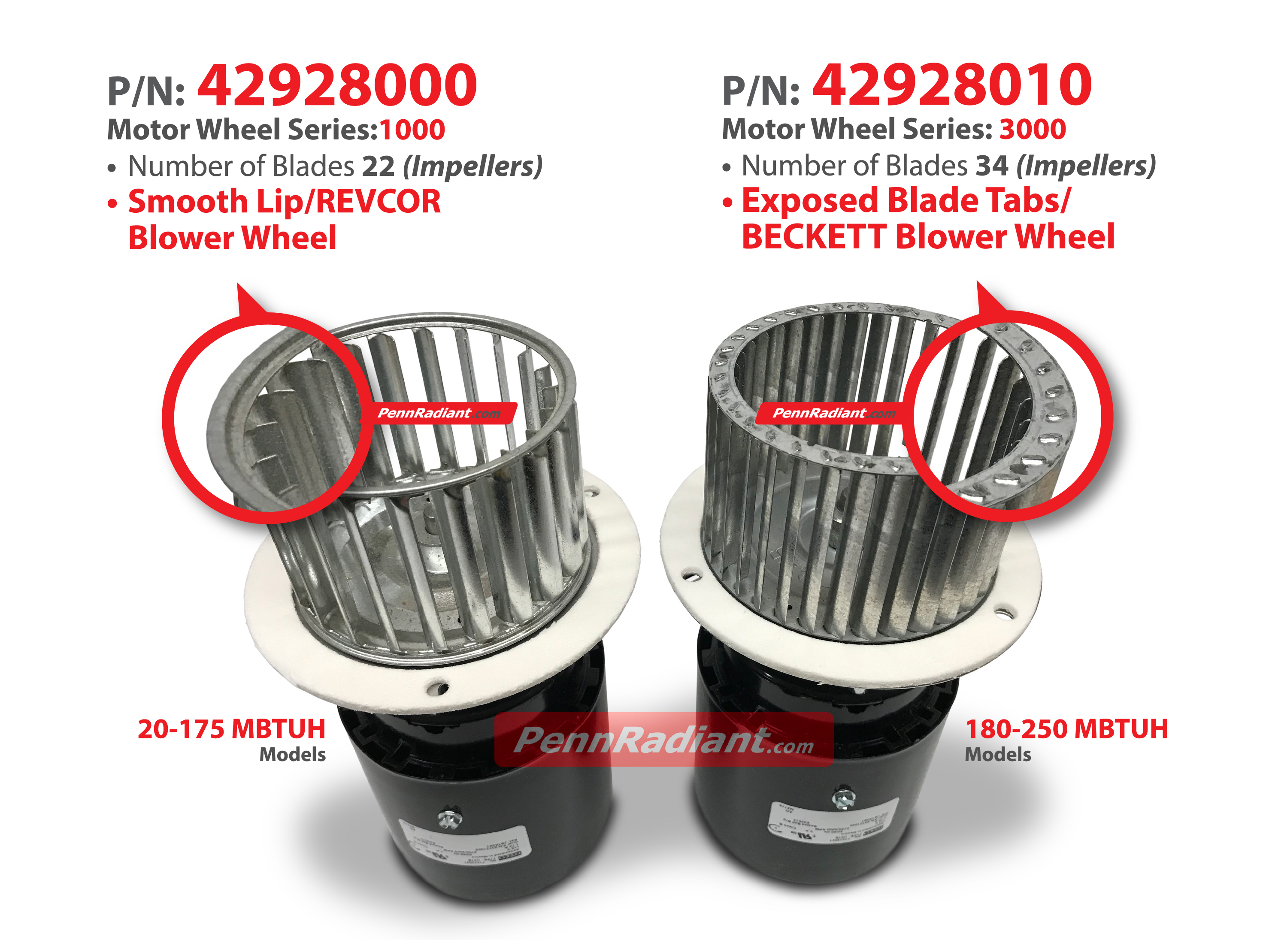 This particular motor kit for models LTS, LTU, ETS, ETU 180-250, with Beckett Blower Wheel for Larger BTU capacities.