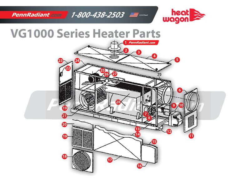 | Manufacturer N/A Heat Wagon /Asset/PennRadiant-Heat-Wagon-VG1000-Small-1.jpg | Item No. N/A 20 | HWP 214420 | N/A Upper Side Panel, Fan End (2) | $248.63 |