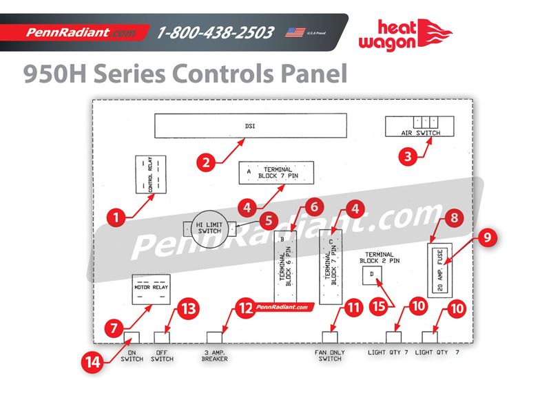 | Manufacturer N/A Heat Wagon /Asset/PennRadiant-Heat-Wagon-950H-Small-1.jpg | Item No. N/A 15 | HWP HC1123 | N/A Terminal Block (D) | $29.73 |